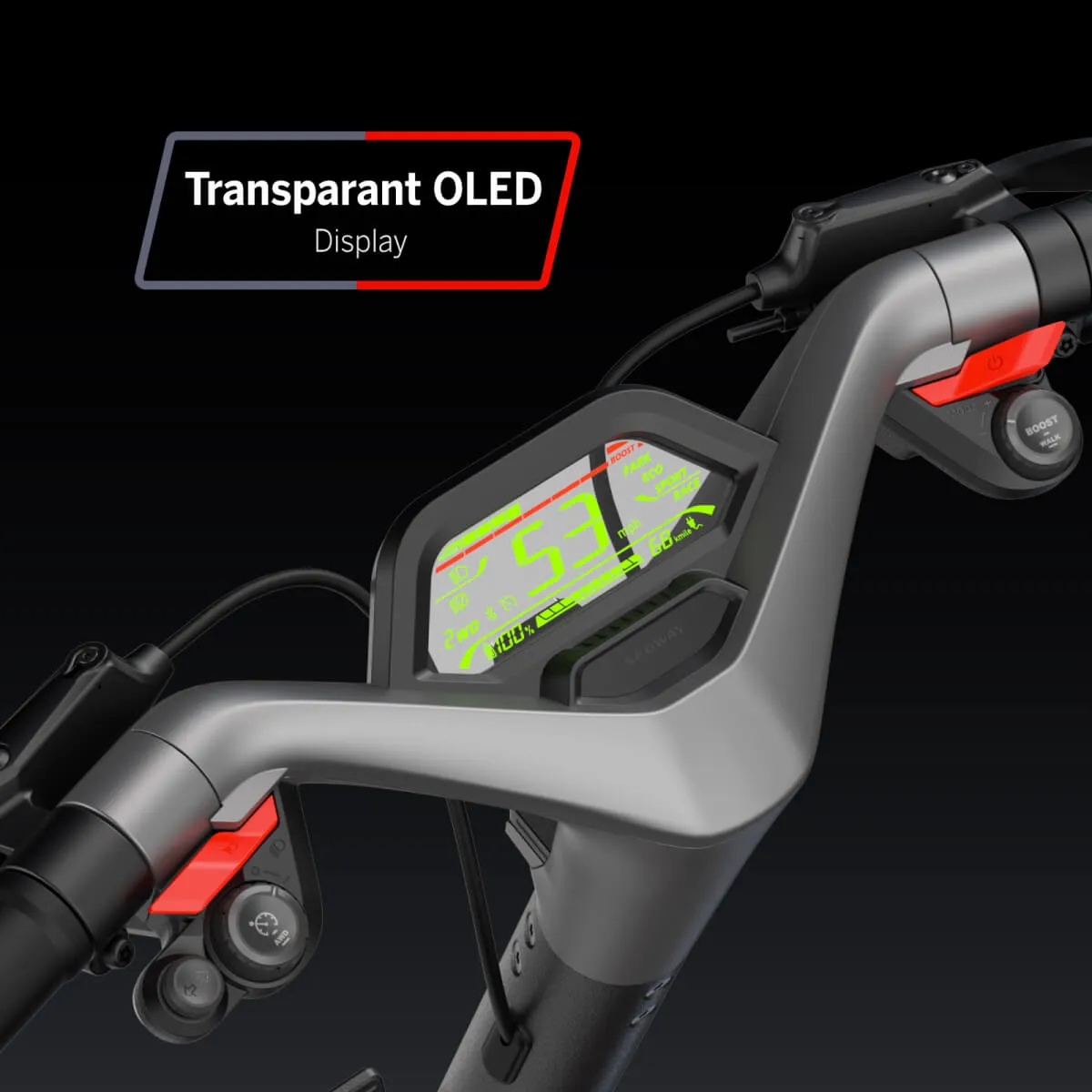 Display : PMOLED Display (จอทะลุ) | ความเร็ว, ระดับแบต, กำลังมอเตอร์, สถานะไฟ, ไฟเลี้ยว, โหมดการขับ ฯลฯ